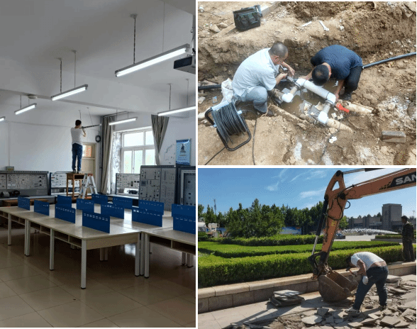 对教学楼、音乐厅等公共场所的门窗、桌椅板凳、灯具风扇进行了全面的排查和维修保养,确保教学设施设备完好。完成部分区域护墙板安装、中心大道铺装等项目。对学校供水、供电系统进行了排查和预防性维护,完成配电设施检测,路灯维修更换、办公楼饮水机区域改造等项目。