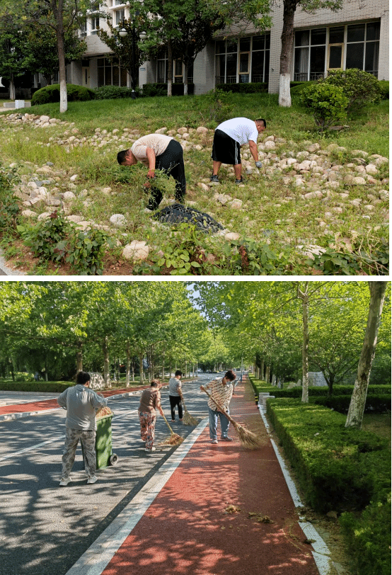 物业保洁人员不畏酷暑,持续进行校园环境卫生保洁和绿化养护,做好假期开放楼宇的值班、安保和巡查工,维护了暑期校园的美丽与整洁。