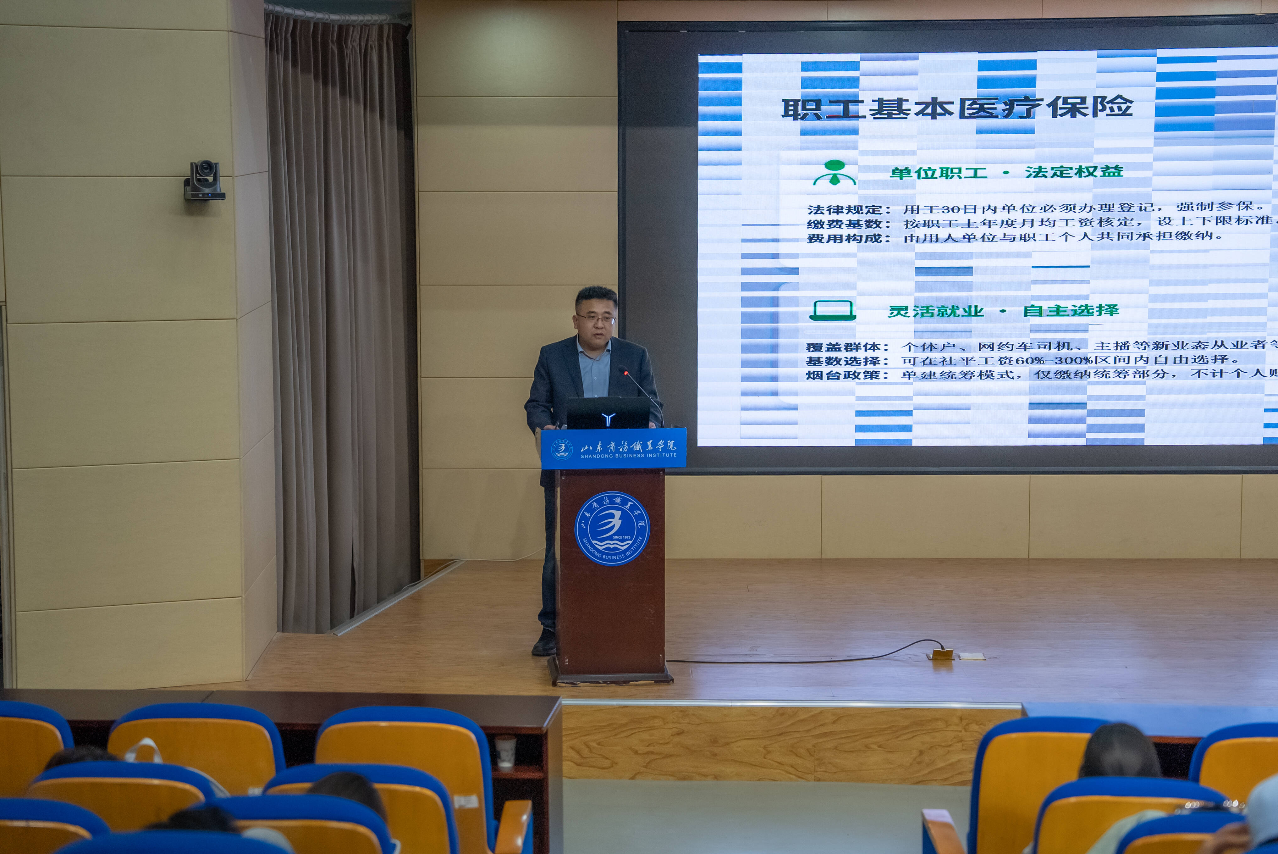 为深入落实全民参保计划,提升在校大学生对基本医疗保险政策的知晓率与参保积极性,4月21日下午,后勤服务处特邀烟台市医疗保险事业中心参保登记科科长于少林,在学校党性教育基地开展了一场主题为“打通医保服务‘最后一公里’ 护航学子健康求学路”的政策宣讲活动。