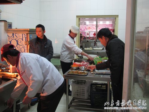 比赛相关原料及操作加工设备由饮食中心负责协调提供,按照烹饪技术比赛的相关要求,参赛厨师现场加工切配制作,轮番上阵,个个手脚麻利,熟练地操作着,各尽所能、施展技艺。在很短的时间内,参赛厨师们就把色泽明亮、香味四溢的菜肴摆上了工作台,大家争相品尝,从色、香、味、刀工、营养、成本核算等方面对菜品进行评价并提出了有关要求。