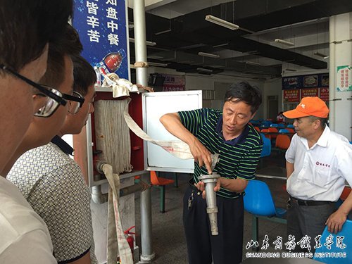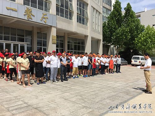 集合完毕后,饮食服务中心副主任王洪强带领大家简要学习了相关消防安全法规,并结合食堂实际向参加演练人员强调了相关安全生产要求。随后,安全保卫处副科长王林重点讲解了食堂火源种类、灭火方散、灭火器材的使用维护等消防基本知识,并带领大家模拟演练灭火操作。演练活动中,饮食服务中心还特别邀请学校总务处专业电工向大家讲解了食堂安全用电常识。