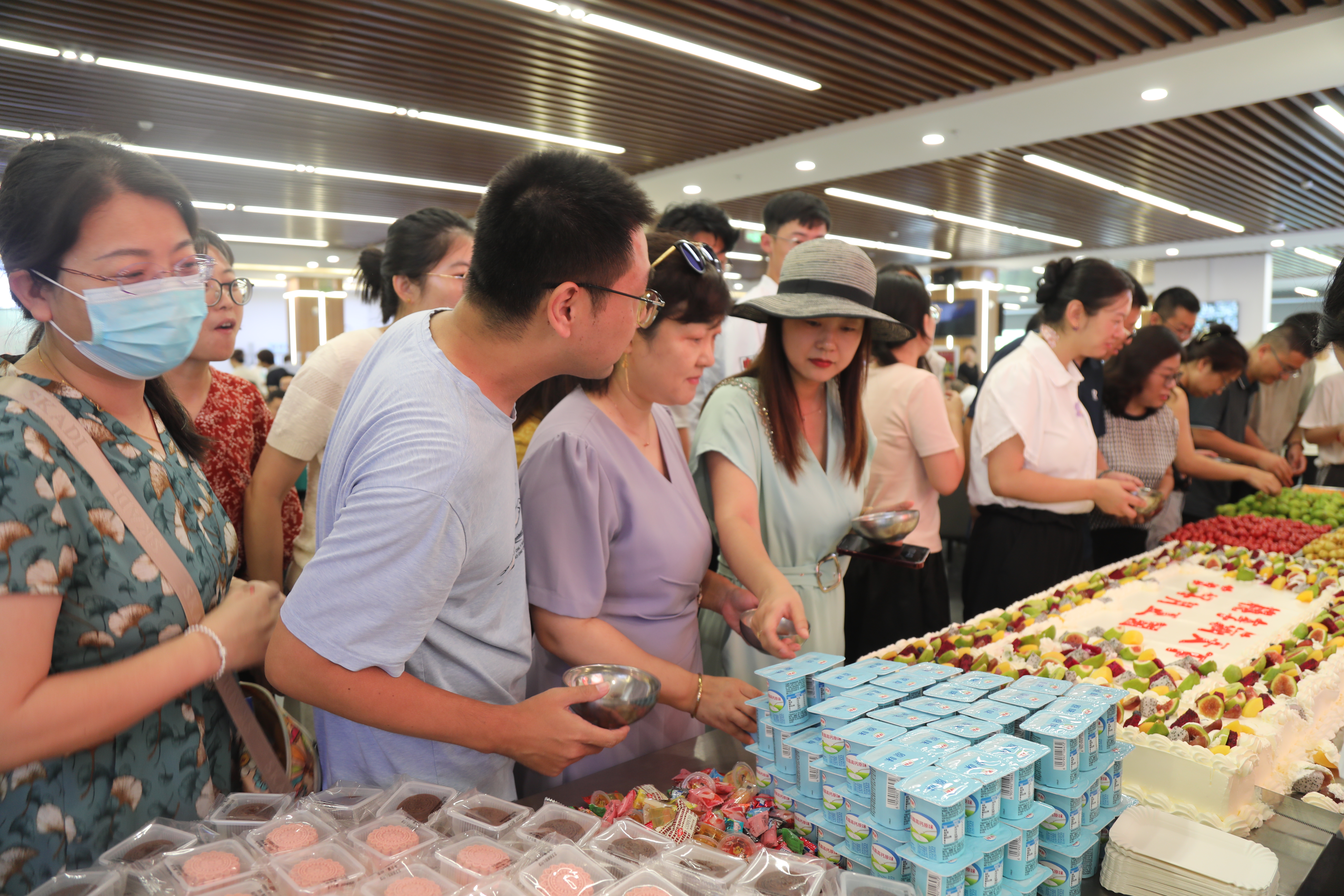 王发明代表学校党委向全体教职员工致以节日的问候和诚挚的祝福,并向坚守教育报国初心,勇担立德树人使命的全体商务人表示衷心的感谢。随后,校领导为在场教职员工分蛋糕。现场洋溢着浓浓的节日气氛。
