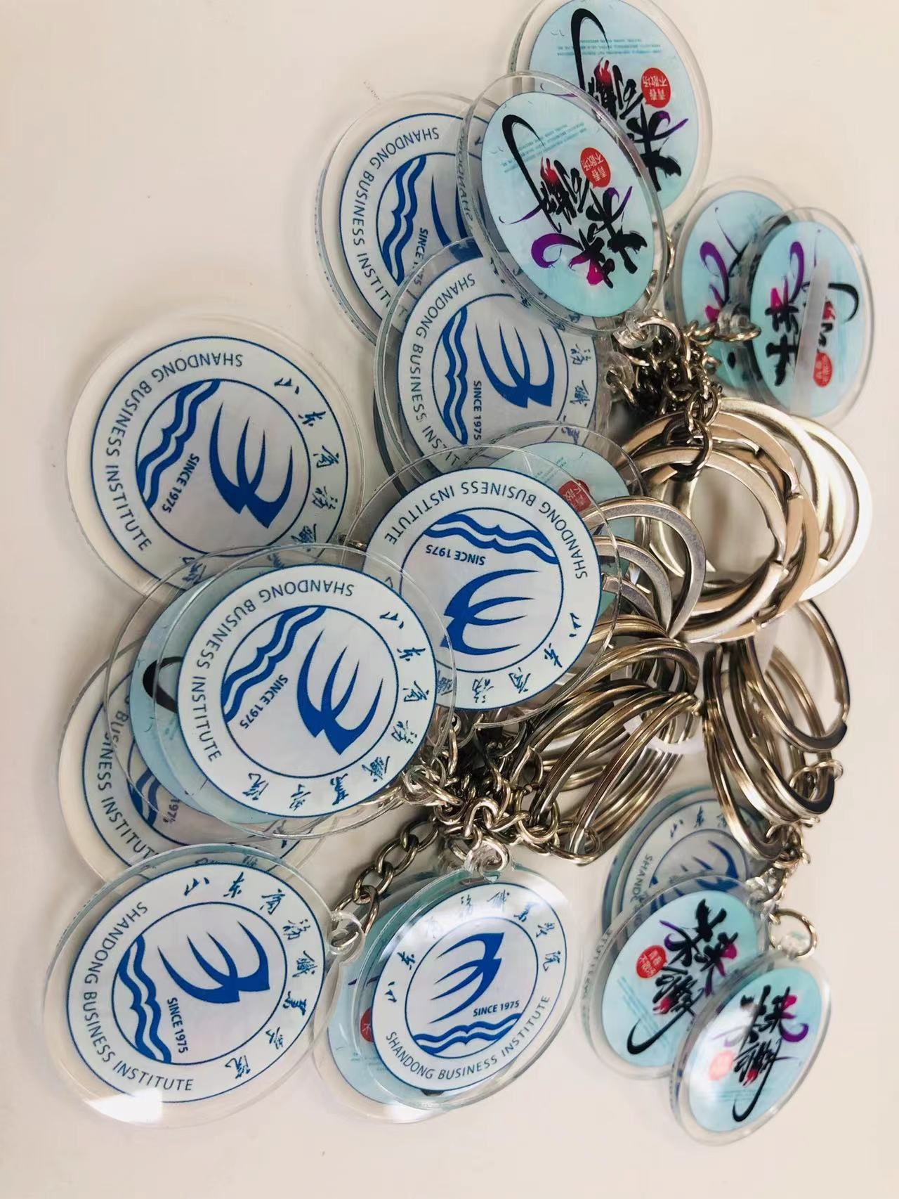据悉,明信片正面为我校校门、图书馆、音乐厅、体育馆、餐厅、校训石等照片,背面印有山东商务职业学院字样。钥匙扣正面为我校校徽,背面为毕业寄语“青春不散场,未来可期”。